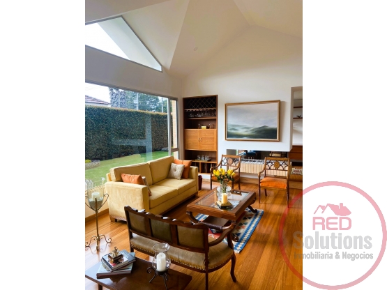 Casa de 724.56 m2 de dos pisos: Primer Nivel: Sala comedor con chimenea a gas, estudio, baño social, cocina integral, zona de lavandería, cuarto de servicio con baño, alcoba Principal con Walk in Closet y Baño. zona verde. Segundo Nivel: Family room, 2 habitaciones cada una con su baño con vista a las montañas, terraza. Parqueadero en pérgola para 2 automóviles y 3 más para ubicar.